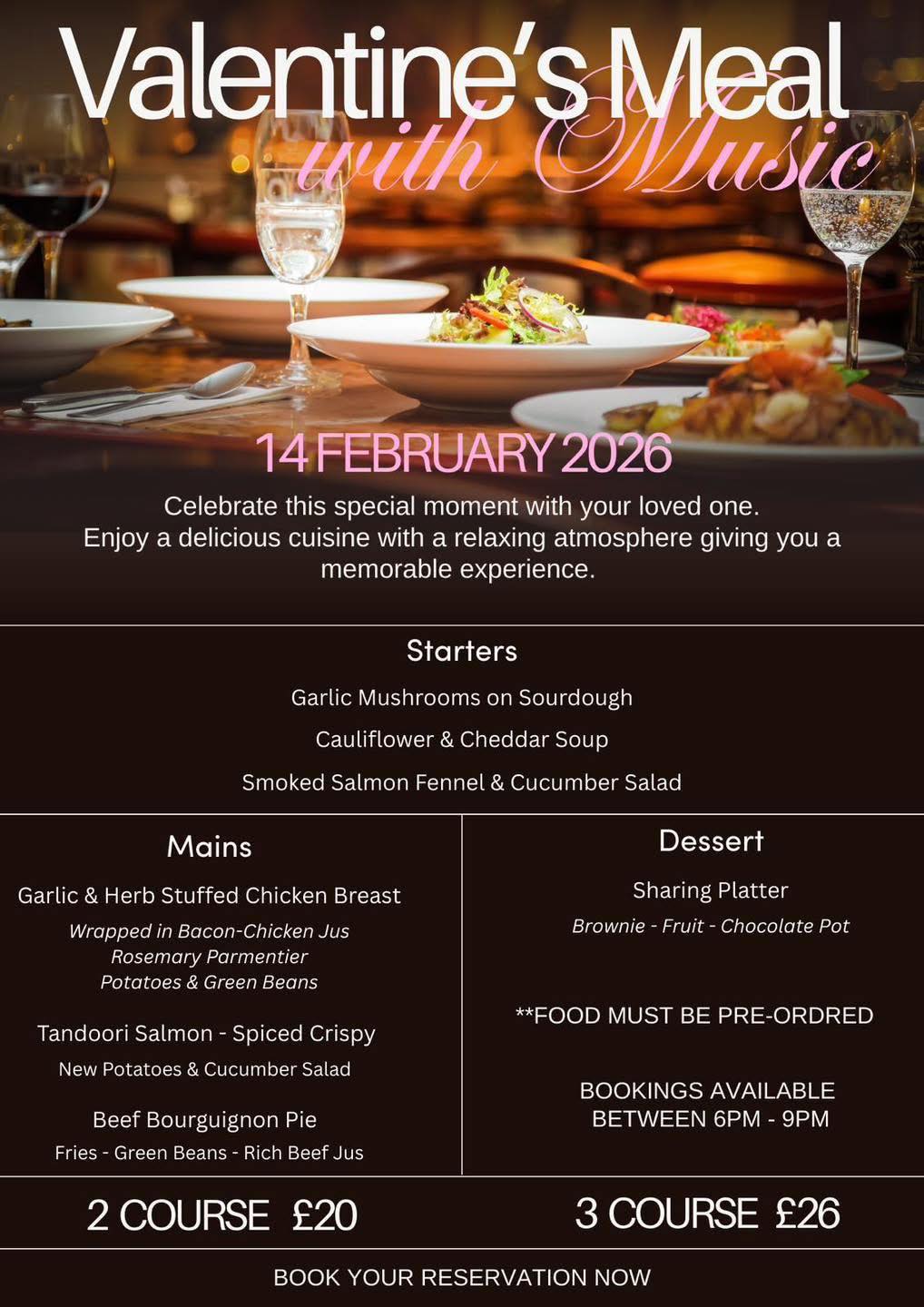 Not long left to book… Valentine’s Day at the Accrington Golf Club